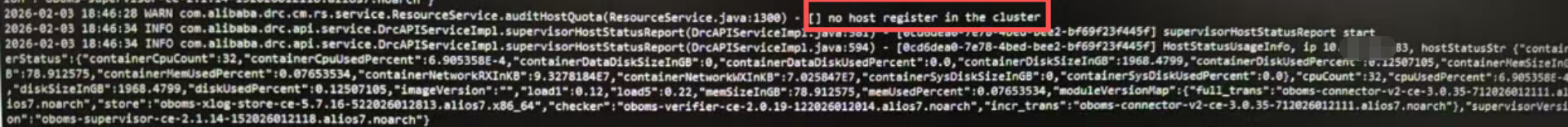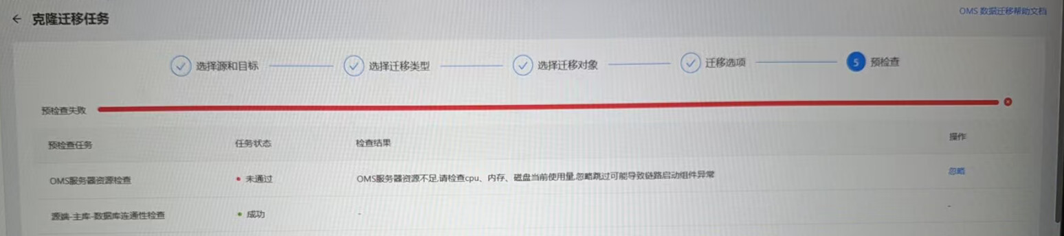 【问题描述】OMS社区版安装部署完成后,新建迁移任务在预检查节点提示OMS系统资源不足,忽略后在全量迁移过程中会提示 No alive hosts in current region,请问该怎么排查,需要看哪些日志信息。