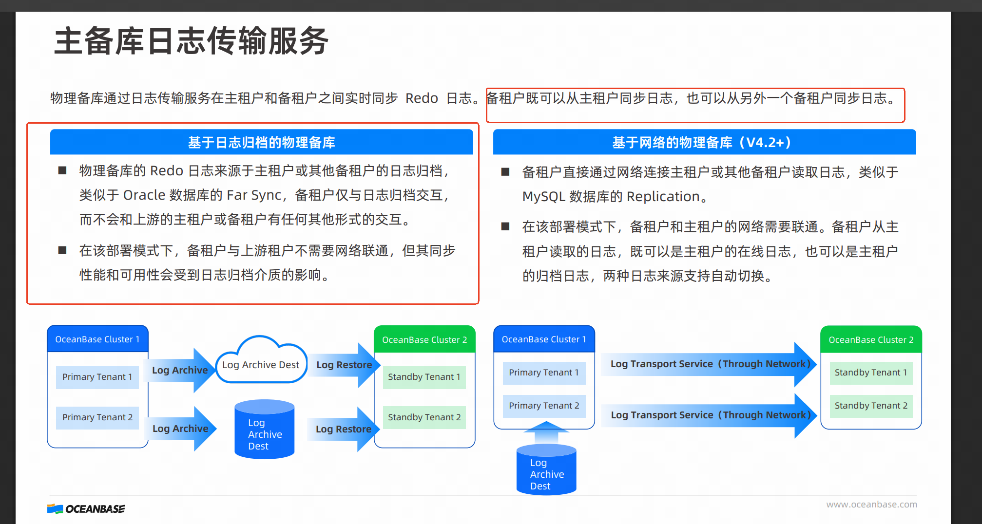 以下关于OceanBase V4版本的物理备库的说法正确的是: