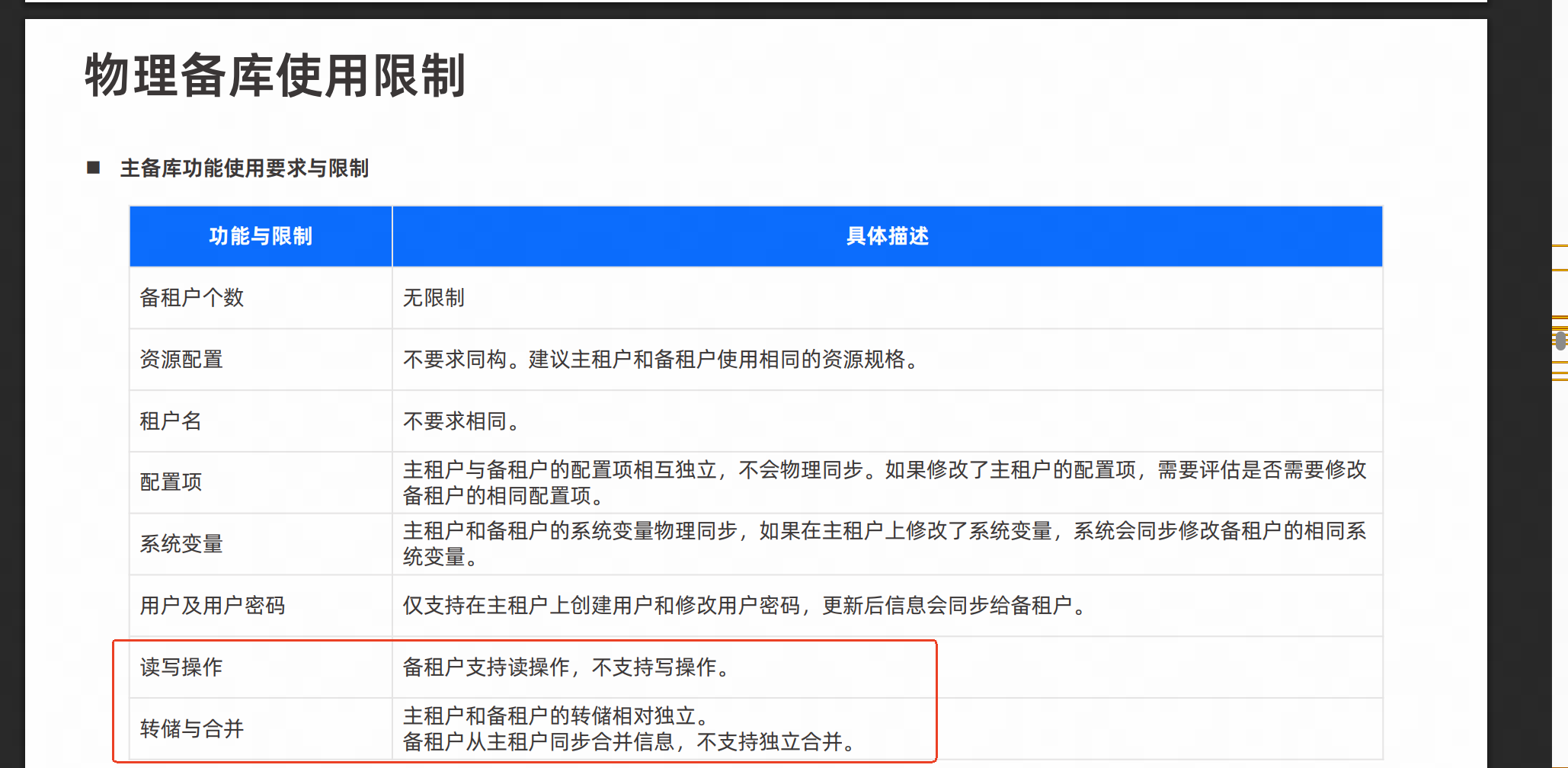 D. 备租户从主租户同步合并信息,不支持独立合并