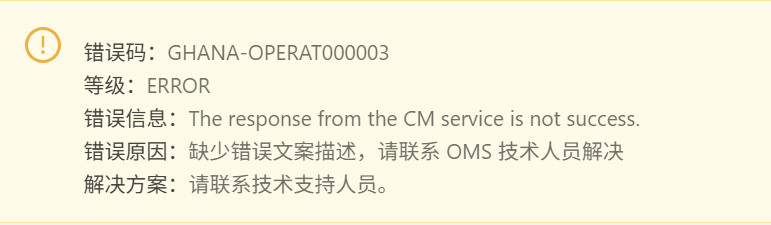 com.alipay.oms.dto.nexception.AccessCmException: The response from the CM service is not success.: CM response not success.
