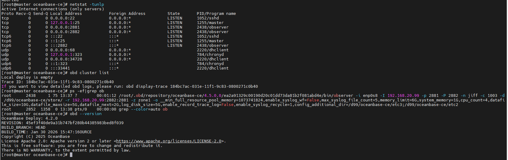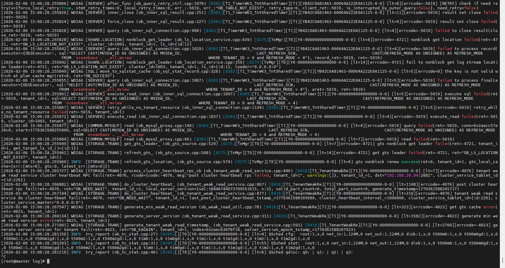 [root@master log]# obclient -h192.168.20.99 -P2881 -A