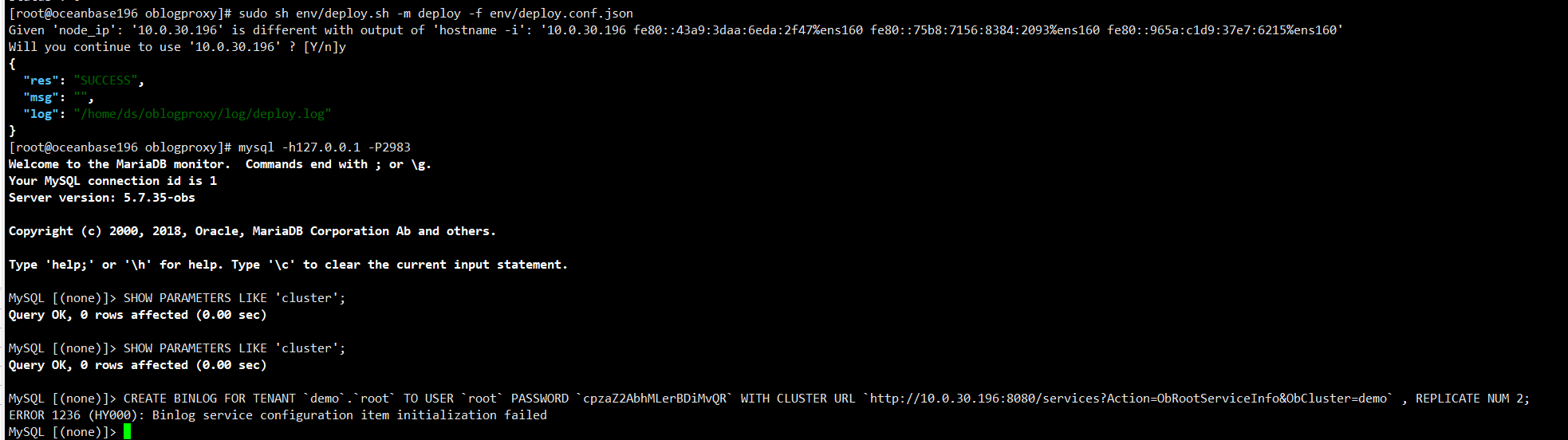 【复现路径】Binlog 服务装完以后状态显示正常,但是执行SHOW PARAMETERS LIKE 'cluster’和show master status返回结构为空,只有show nodes有结果