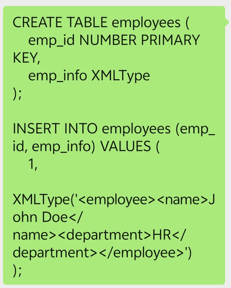 XMLType(‘John DoeHR’)