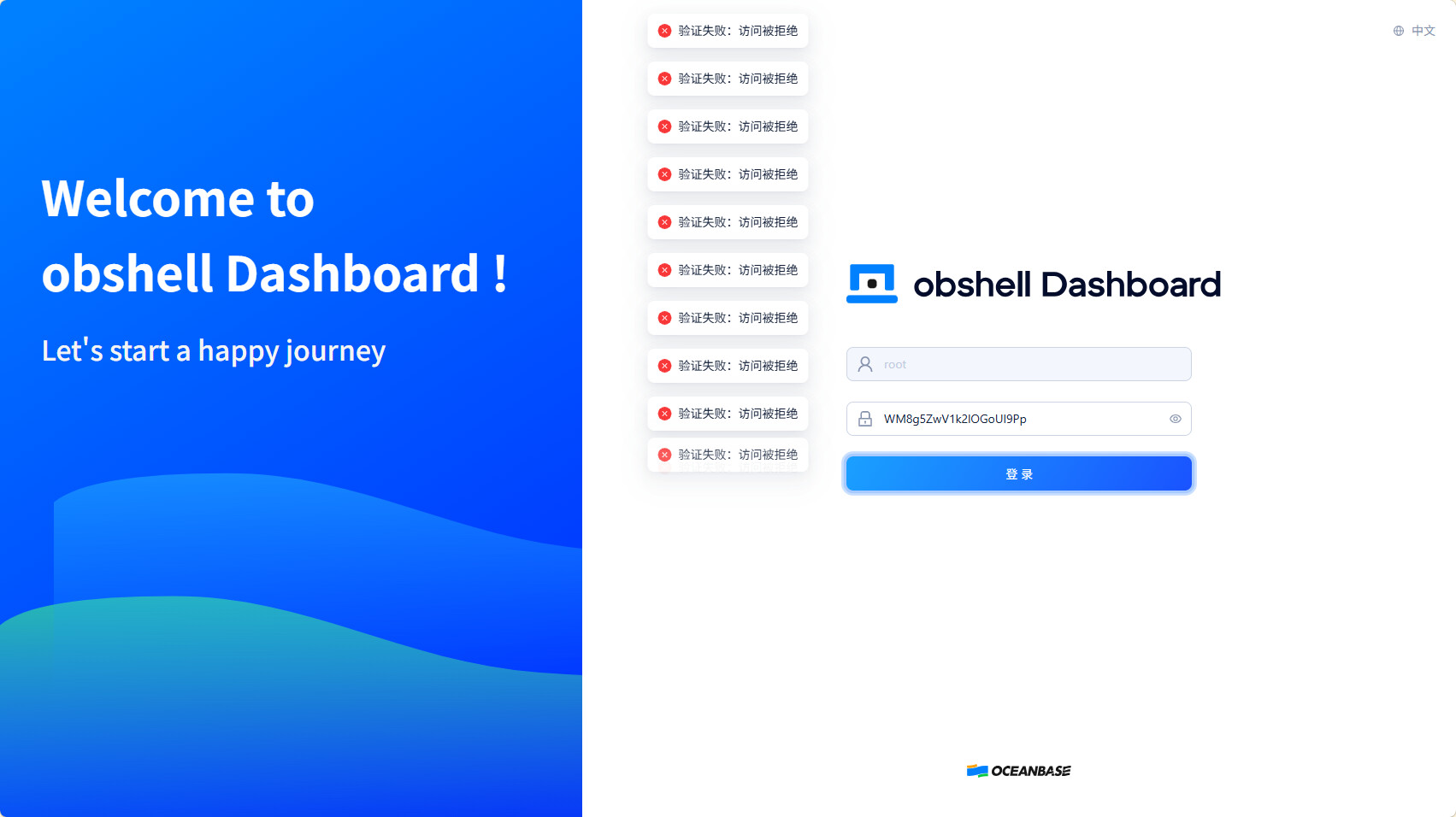 求解,obshell Dashboard 的密码没改过,但是今天登陆不上去了