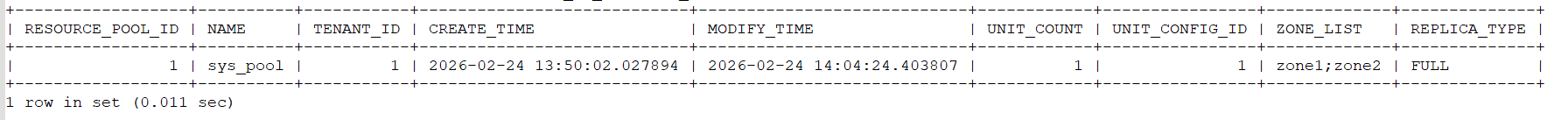 - zone2:192.168.20.100:2882(ACTIVE)已为 sys 租户设置