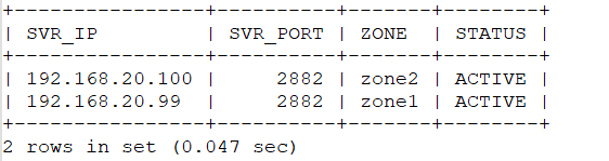 - zone1:192.168.20.99:2882(ACTIVE)