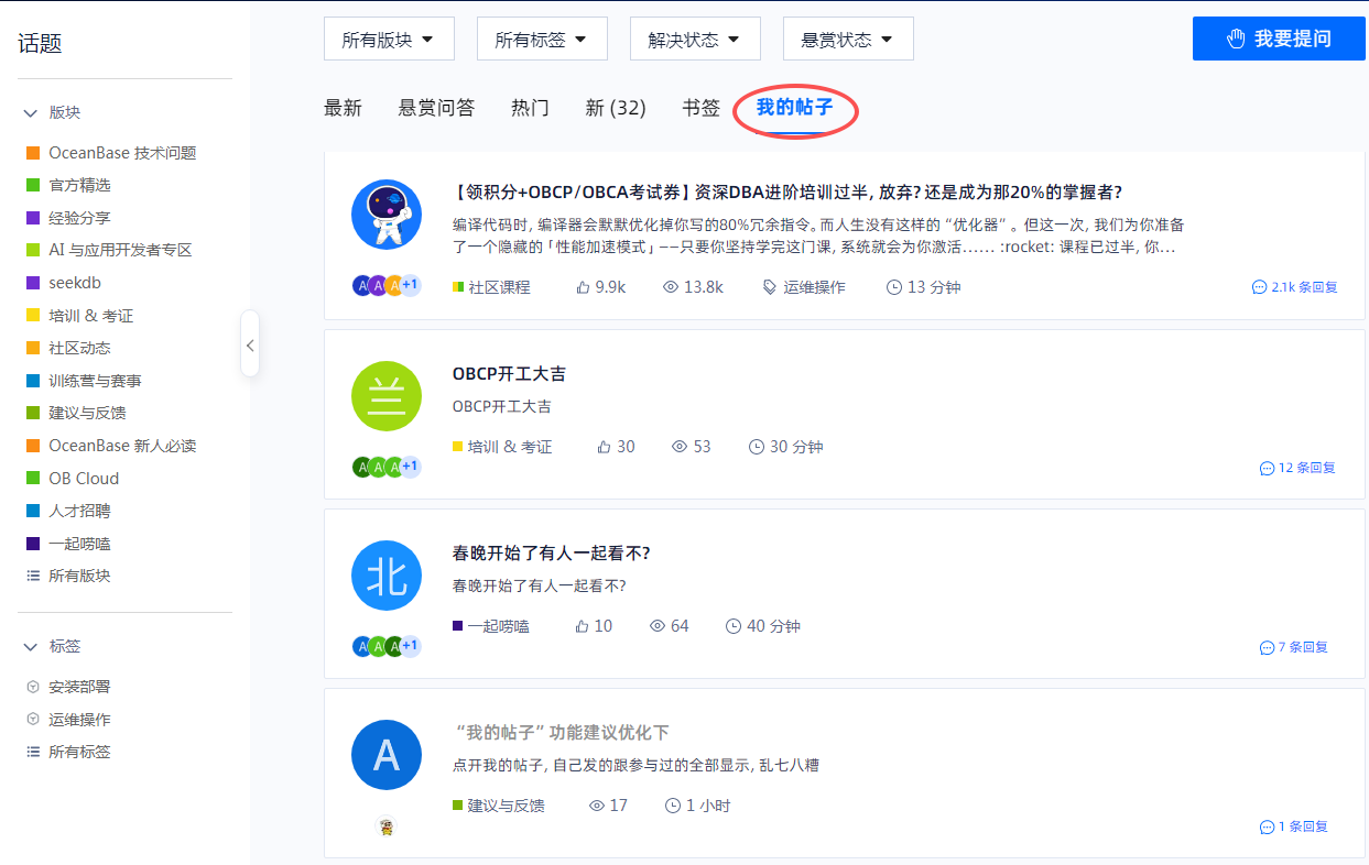 点开我的帖子,自己发的跟参与过的全部显示,乱七八糟