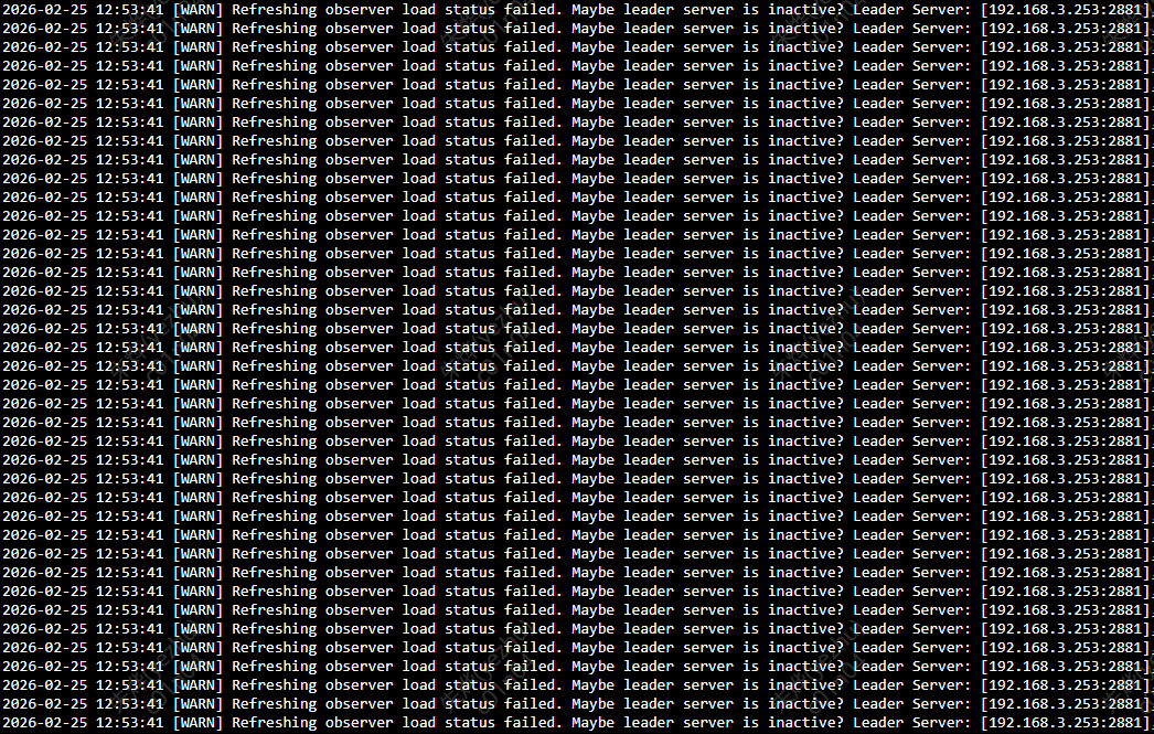 【问题描述】通过obloader导入数据时,正常运行一段时间后日志一直在刷Refreshing observer load status failed. Maybe leader server is inactive? Leader Server: [xxx.xxx.xxx.xxx:2881], Table: “xxx”, Partition: 0
