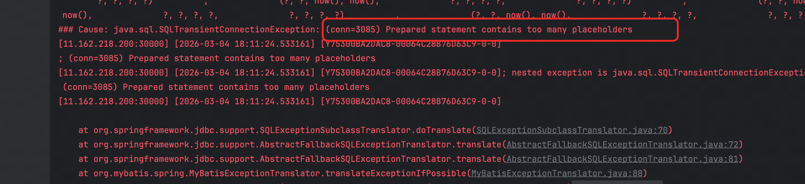 【问题描述】JDBC驱动oceanbase-client,版本2.2.10.2,批量插入8000+数据出现如下报错什么原因?