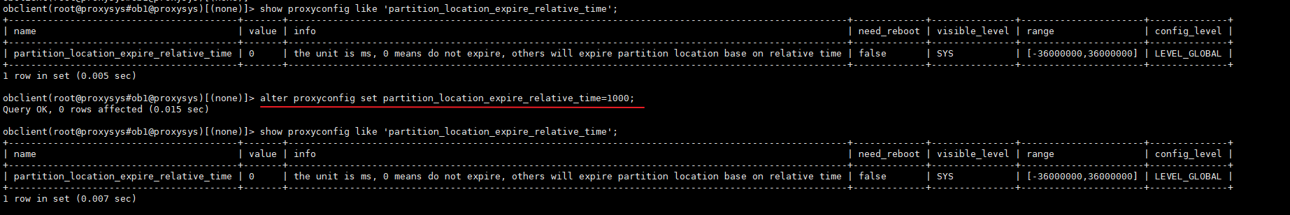 【问题描述】修改不了ODP的配置项 partition_location_expire_relative_time