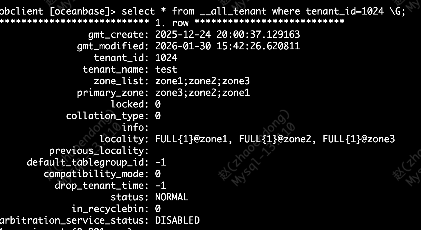 2 、通过sys租户查询test租户资源配置