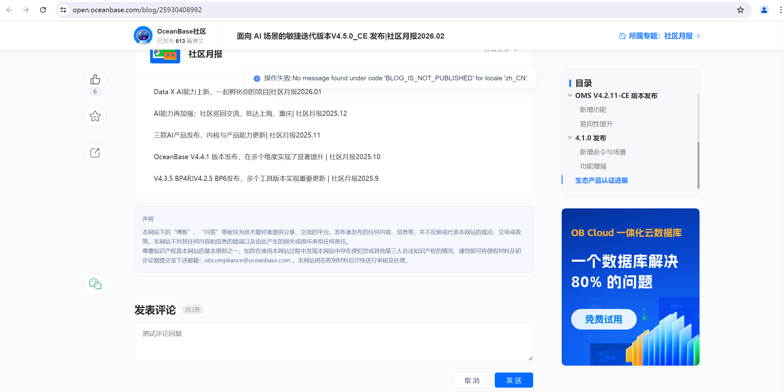 面向 AI 场景的敏捷迭代版本V4.5.0_CE 发布|社区月报2026.02-数据库技术博客-OceanBase分布式数据库