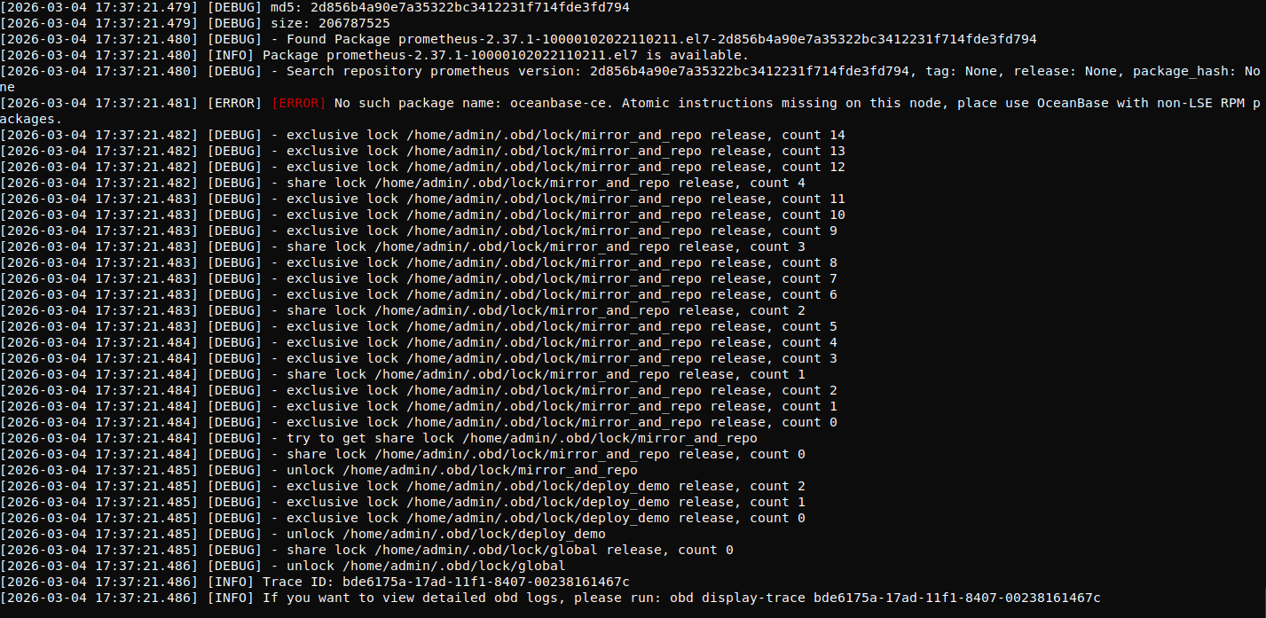 If you want to view detailed obd logs, please run: obd display-trace c8bd45ae-1875-11f1-bd17-00238161467c