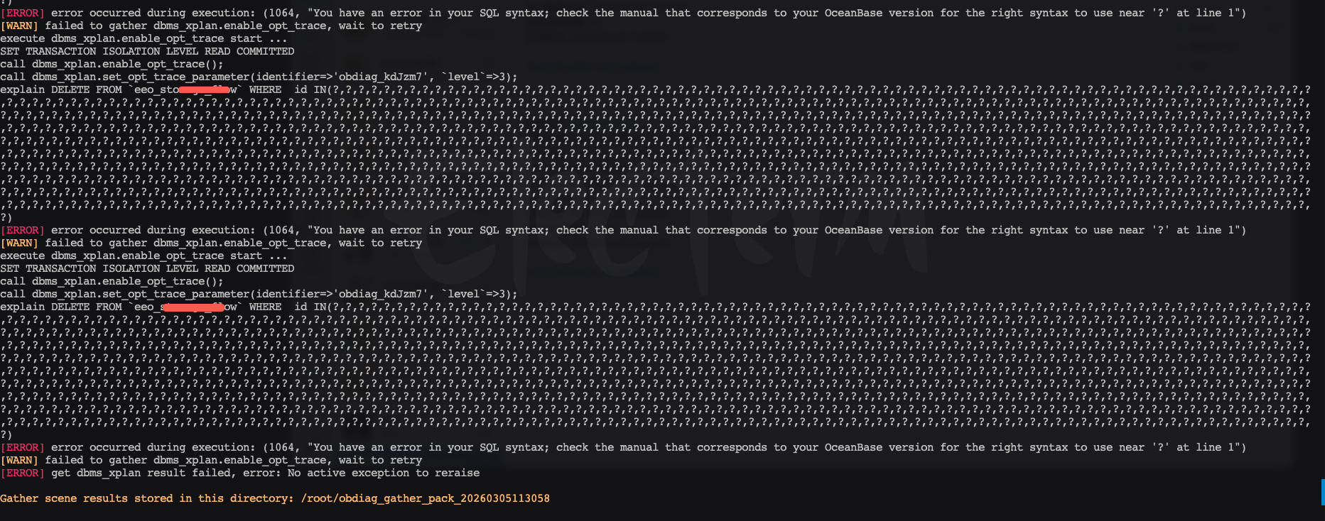 我这个trace_id执行的就是正常的sql,不是参数化的sql哈,是分析的时候它explain 里带的?号,obdiag执行的这个命令结果: