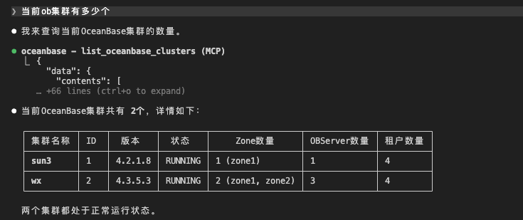 如果您本地没有uv环境,您也可以使用python3 -m ocp_mcp.server 方式启动,但请注意需要在awesome-oceanbase-mcp/src/ocp_mcp_server目录下执行