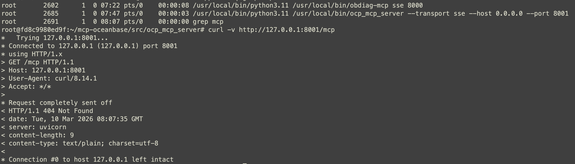 root@cb515b2ac567:/mcp-oceanbase/src/ocp_mcp_server# ocp_mcp_server --transport sse --port 8001