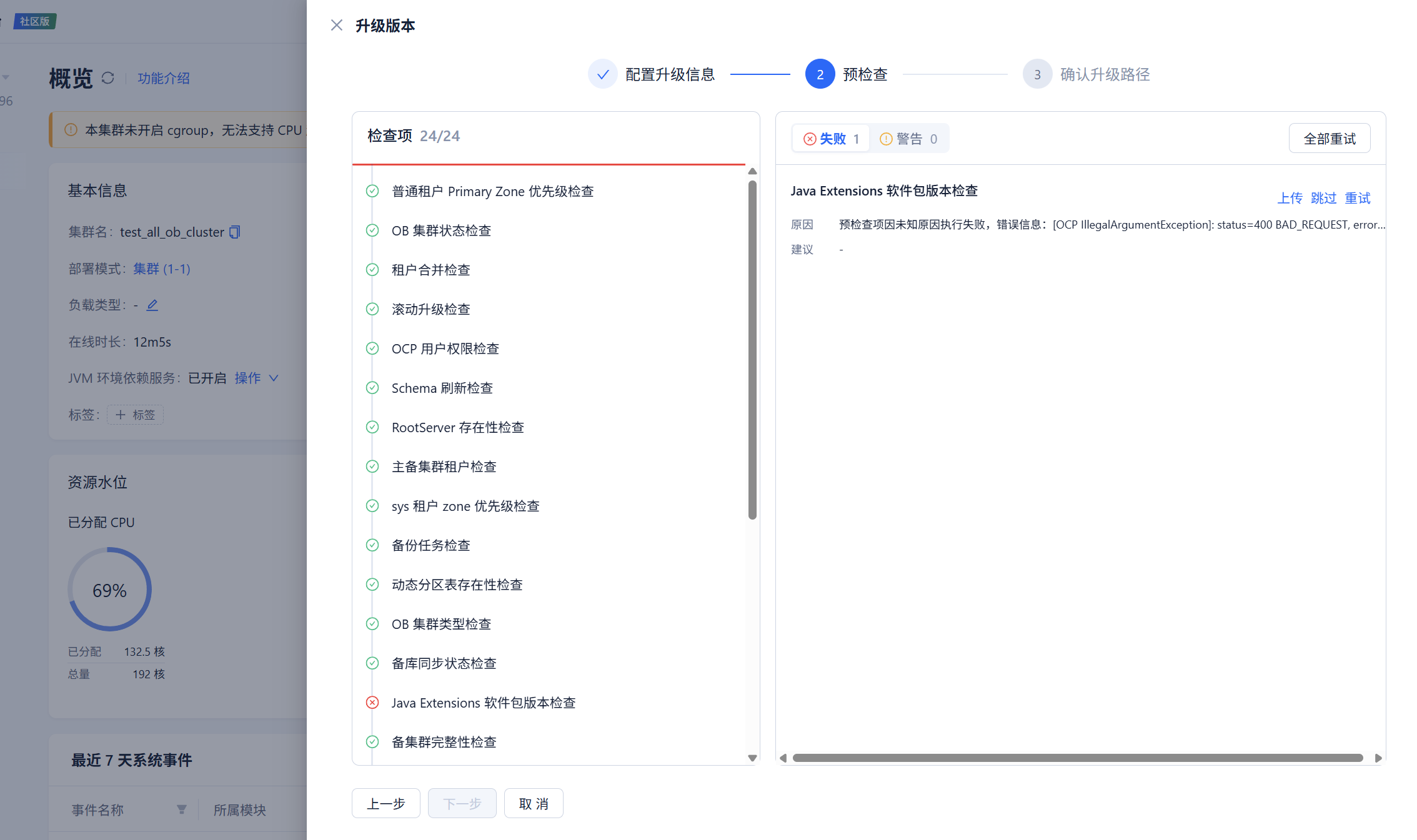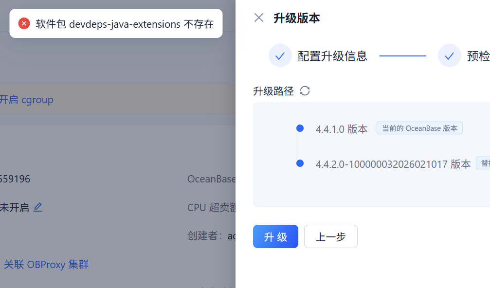老师,您好,我们想尝试从4.4.1 hf2通过ocp升级至4.4.2,但是升级过程中,却报错了,“devdeps-java-extensions软件包版本检查”