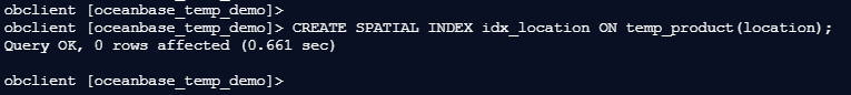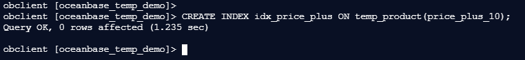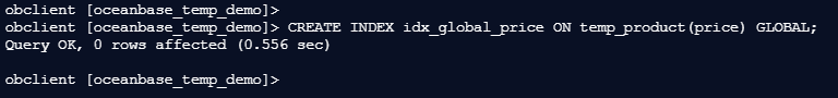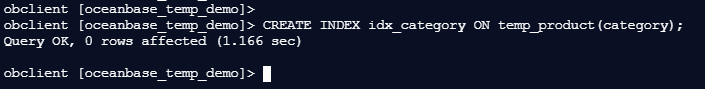 obclient [oceanbase_temp_demo]> CREATE INDEX idx_category ON temp_product(category);