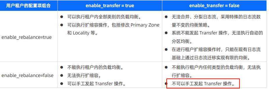 文档上说:enable_rebalance=true,enable_transfer = false在进行租户扩缩容操作时,只能在现有日志流