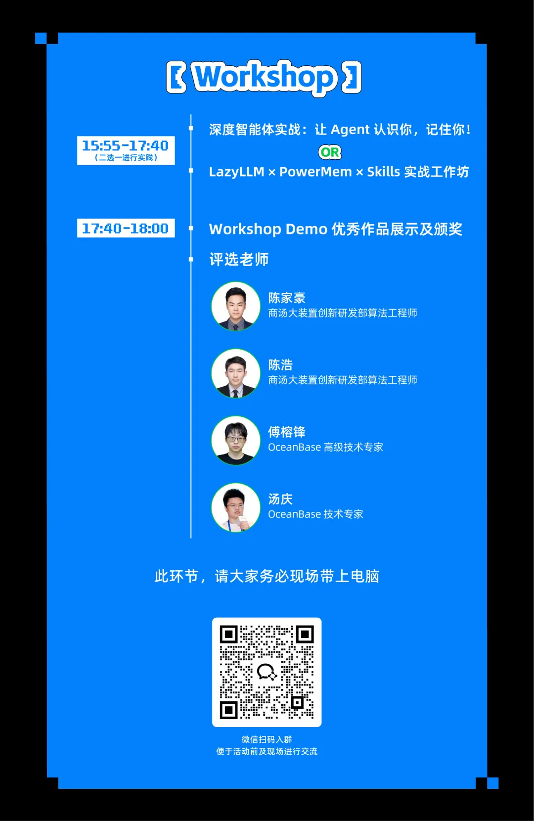 下午的动手环节「给你的 AI 智能体装上最强大脑」将带来沉浸式 Workshop,现场开发者可体验基于 OceanBase seekdb 的 AI 原生数据库与智能体记忆集成能力。