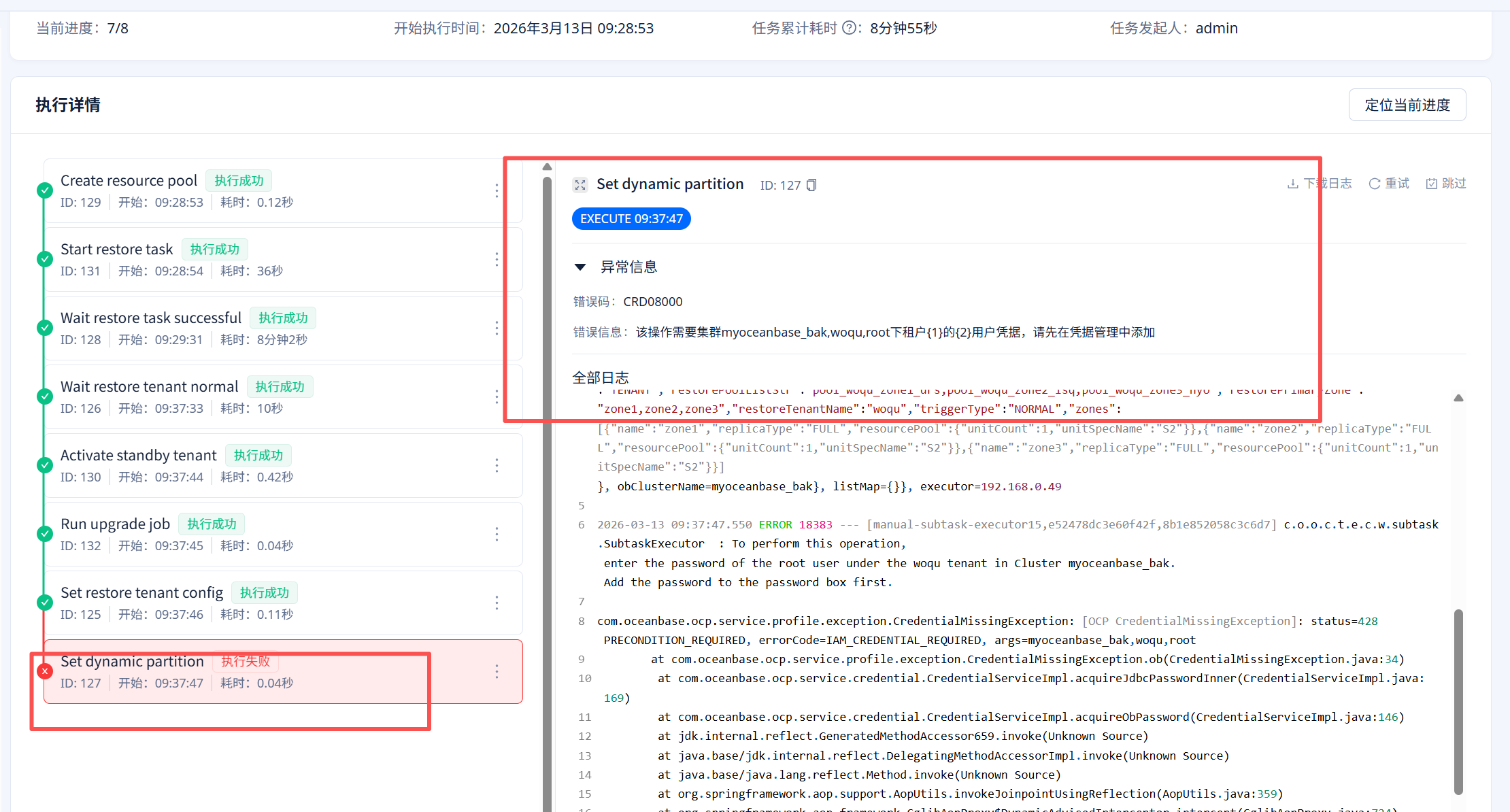原始数据库是ob:4.4.1 做了指定租户数据的备份