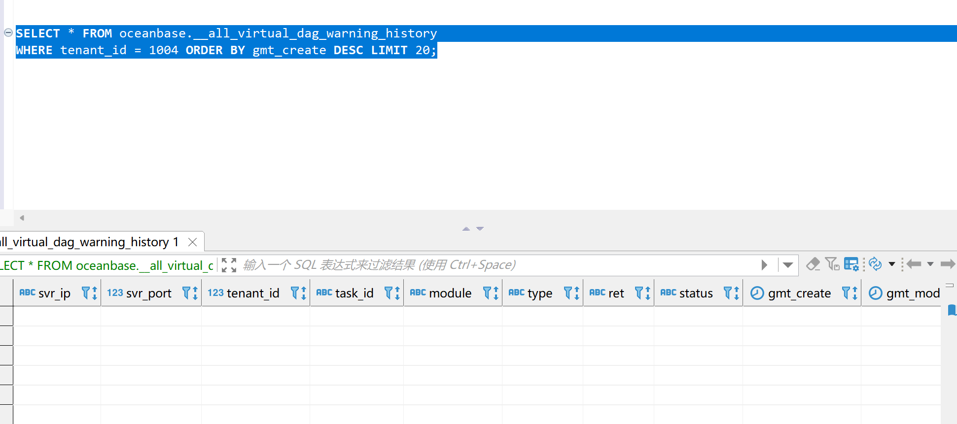 SELECT * FROM oceanbase.__all_virtual_dag_warning_history