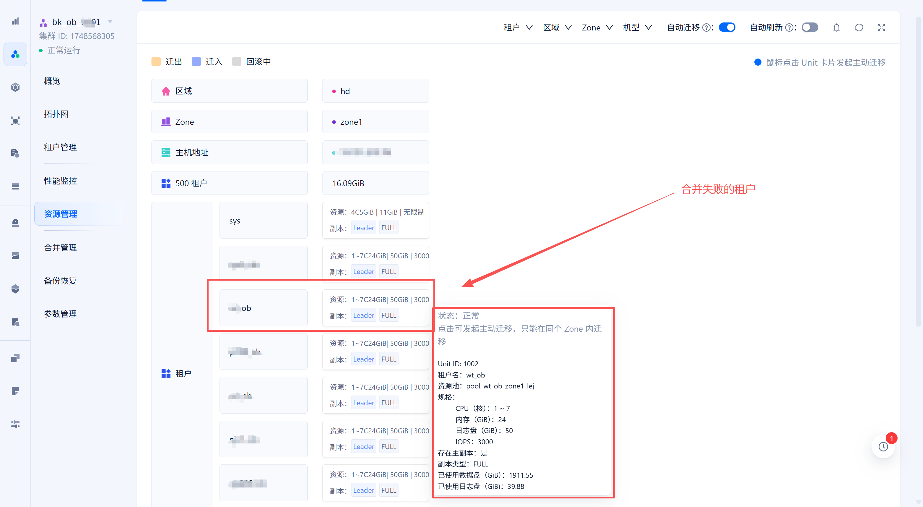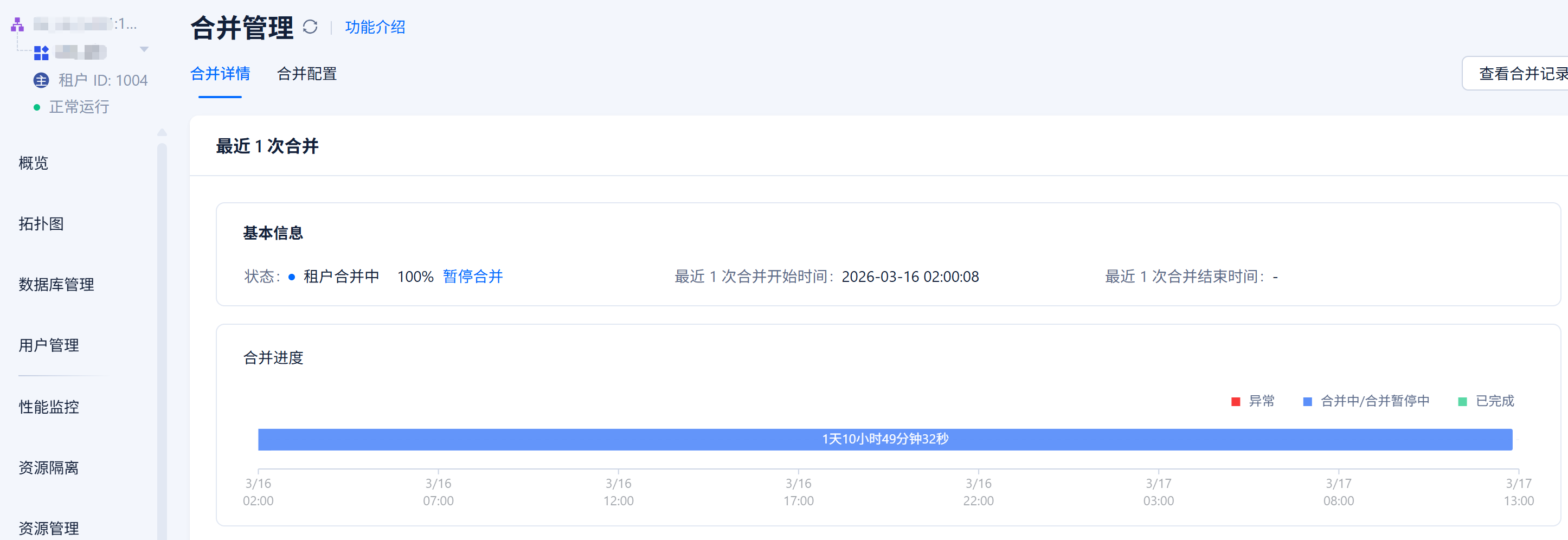 【问题描述】租户长时间未合并,每天合并时间是凌晨2点,本次报错长时间未合并的时间是从3-16 2:00 到现在(3-17 12:45);