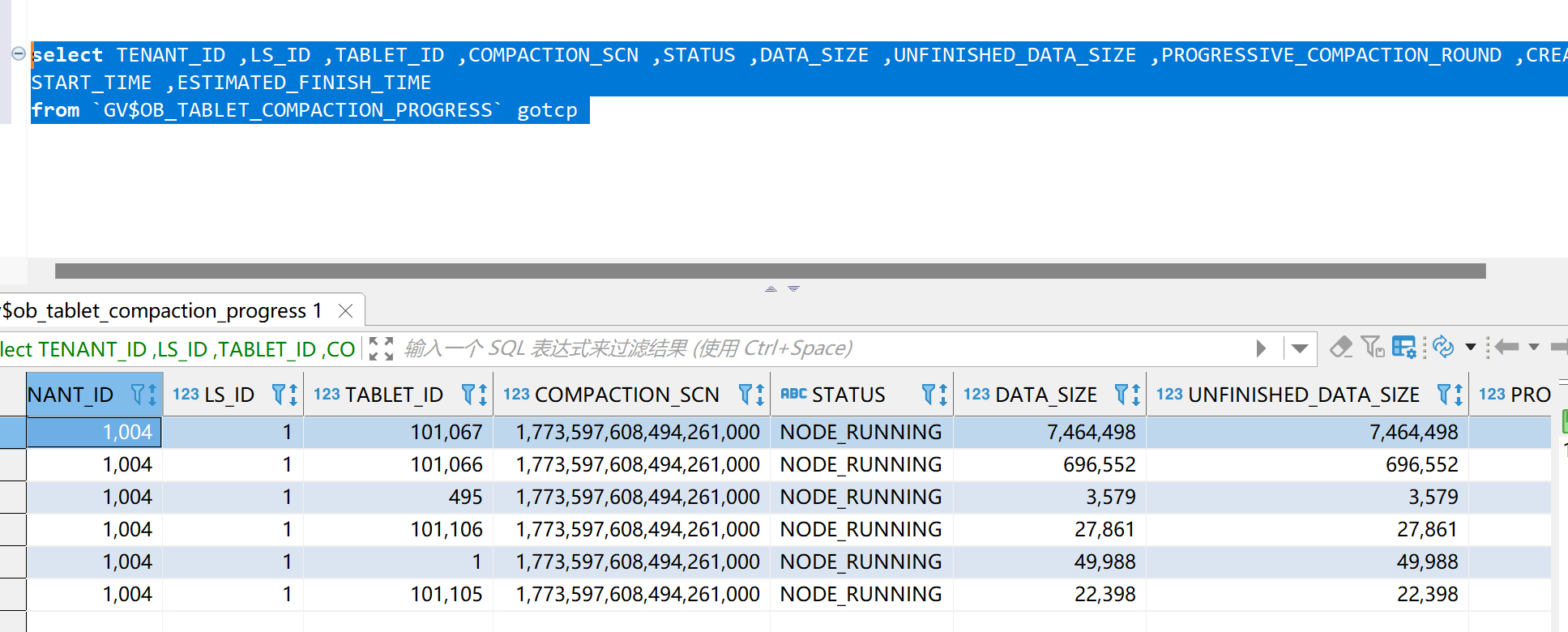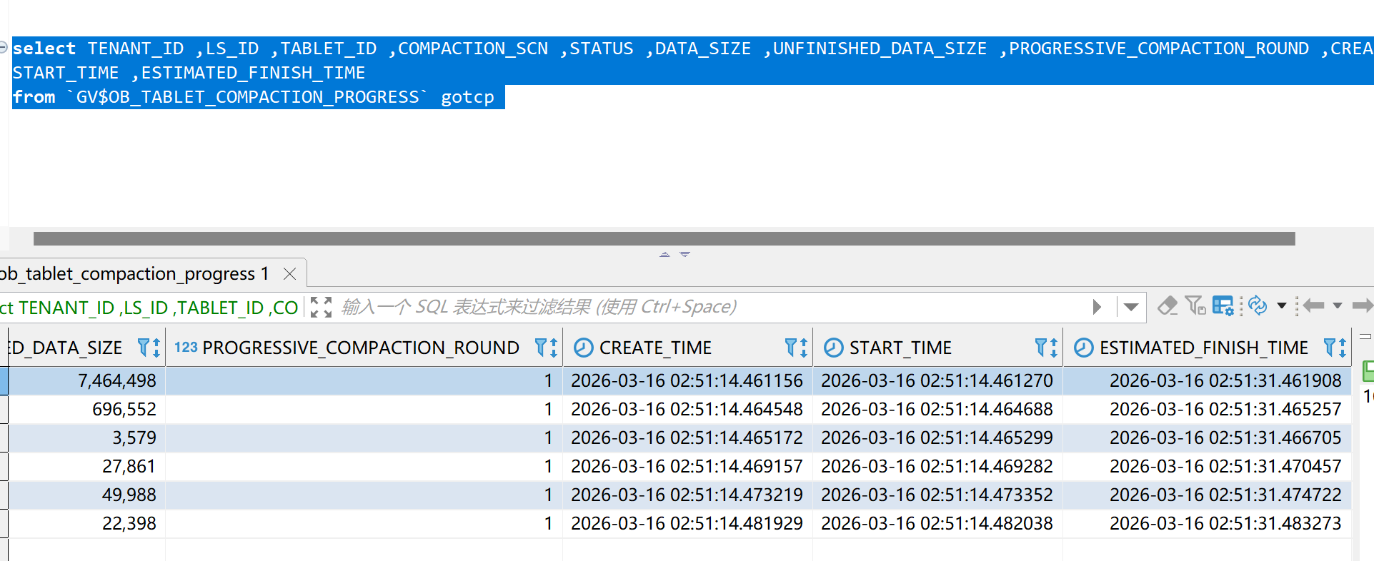1.业务租户查询:GV$OB_TABLET_COMPACTION_PROGRESS