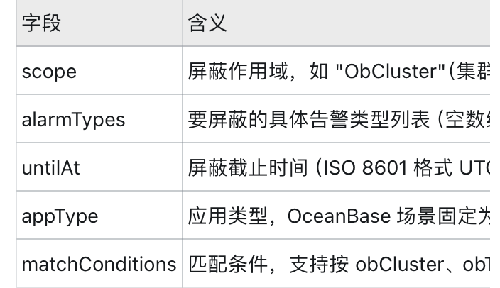 • 请求体示例(屏蔽指定集群的所有告警):