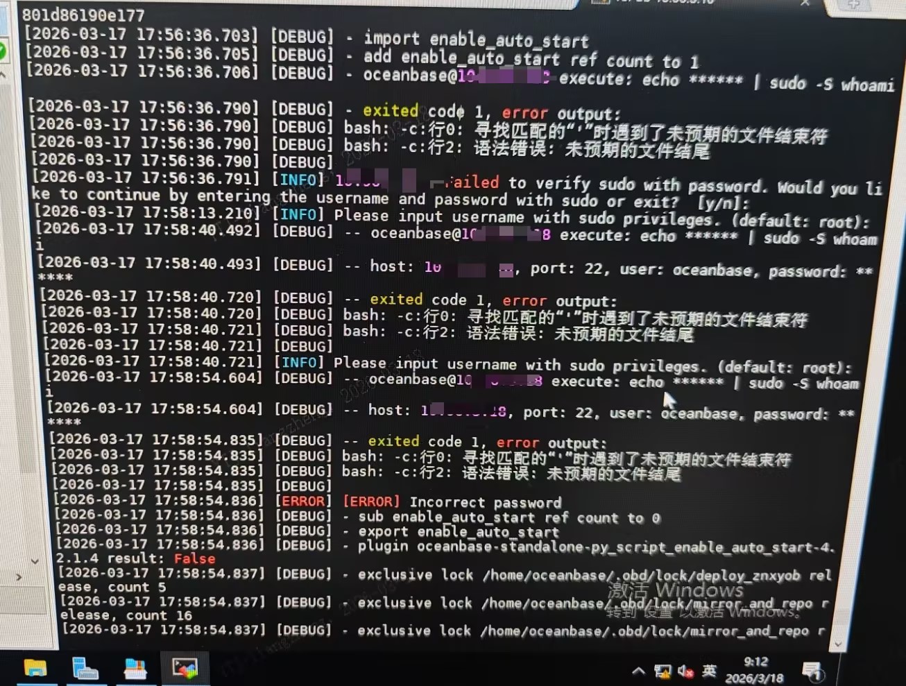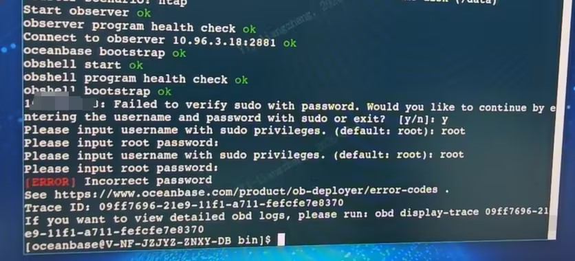 【问题描述】安装时候出现如下报错,提示要输入有sudo权限的用户,输入正确的账号密码后依然提示错误