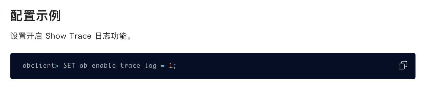 示例为:SET ob_enable_trace_log = 1;