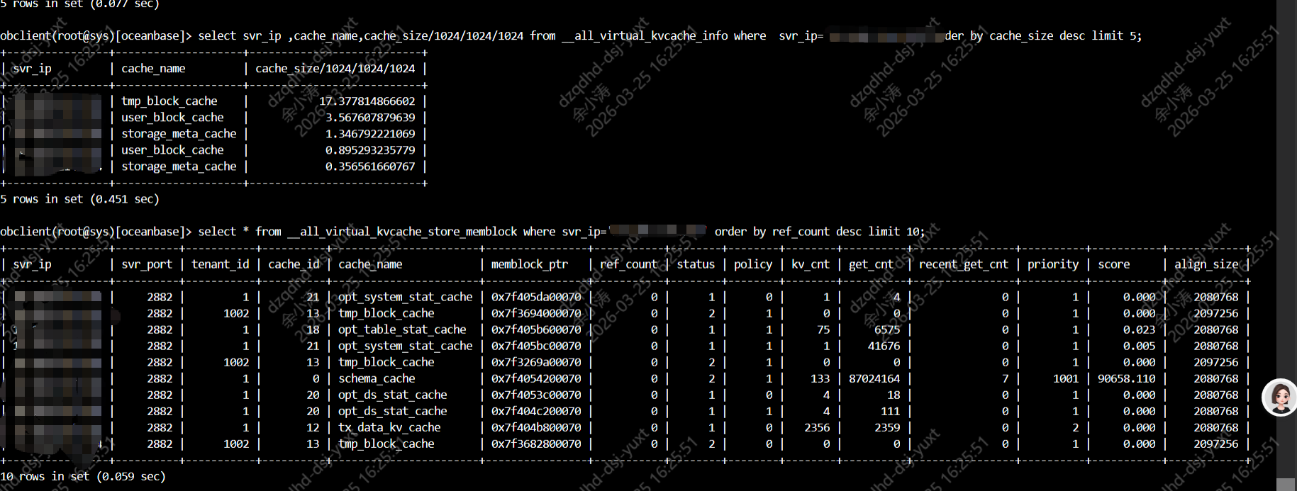 select * from __all_virtual_kvcache_store_memblock order by ref_count desc limit 10;
