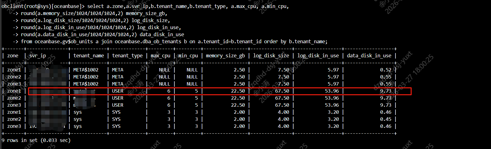 select a.zone,a.svr_ip,b.tenant_name,b.tenant_type, a.max_cpu, a.min_cpu,