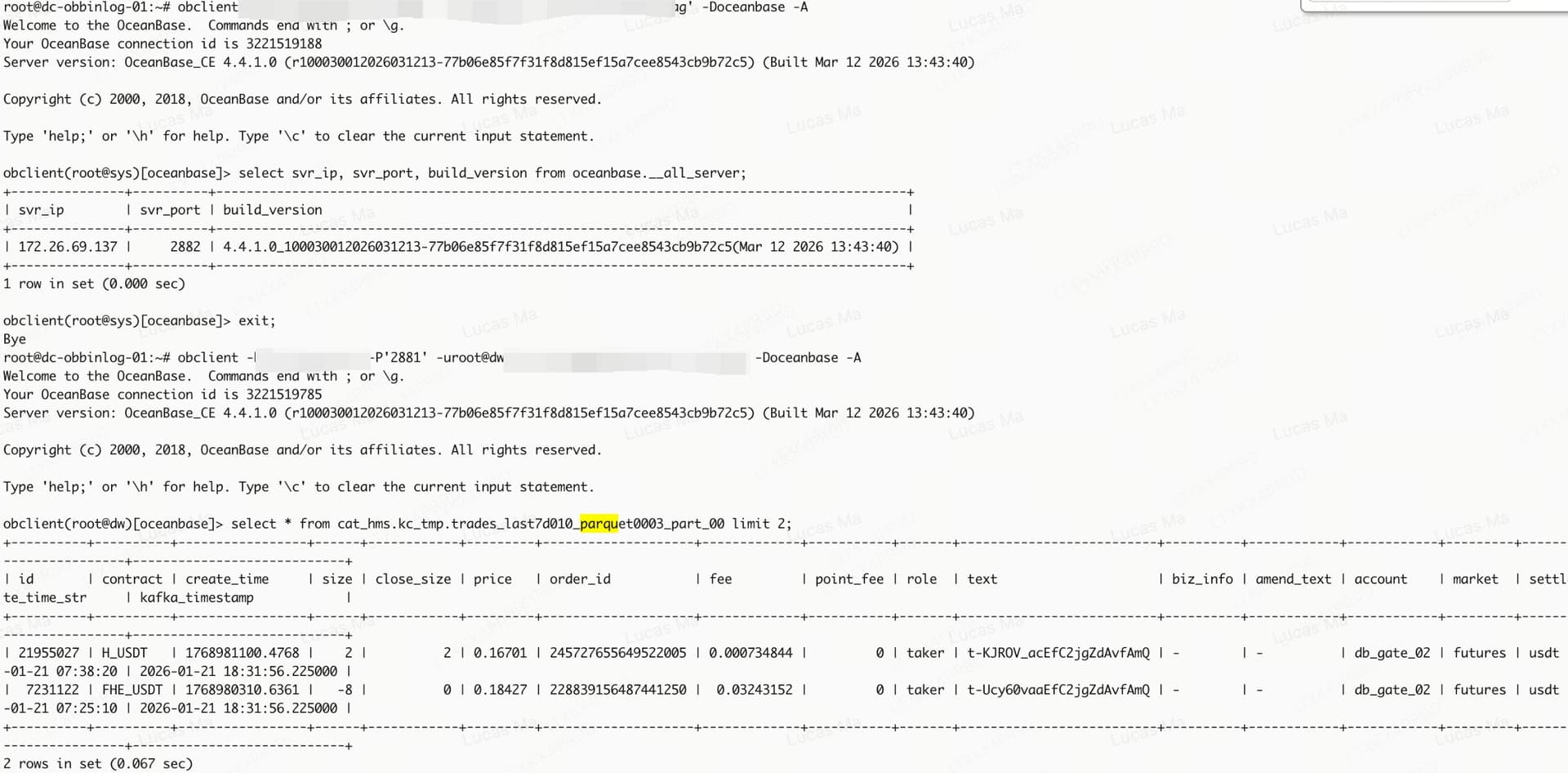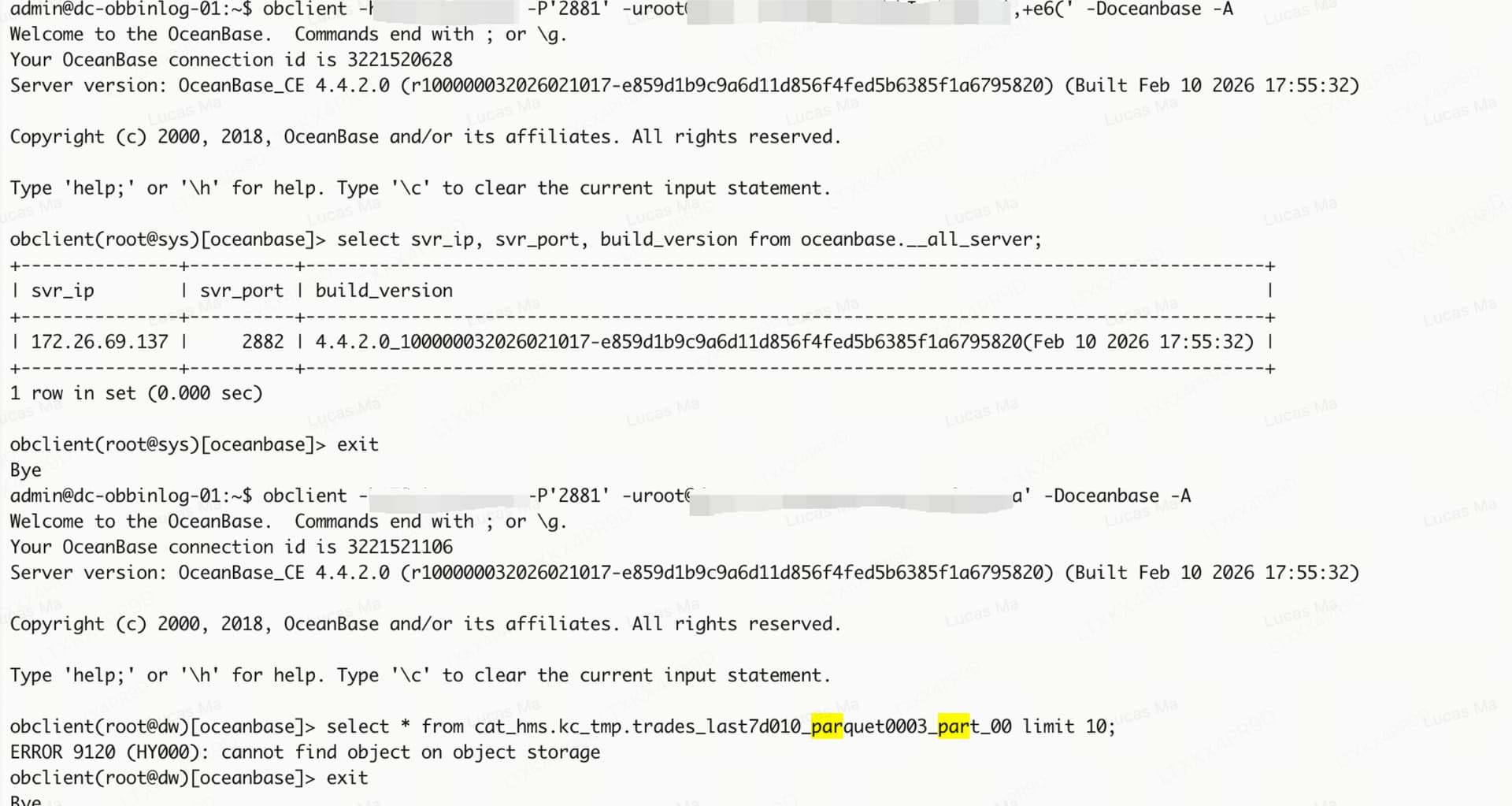 - OceanBase 访问时命中的路径是目录,而不是目录下的具体 parquet 文件