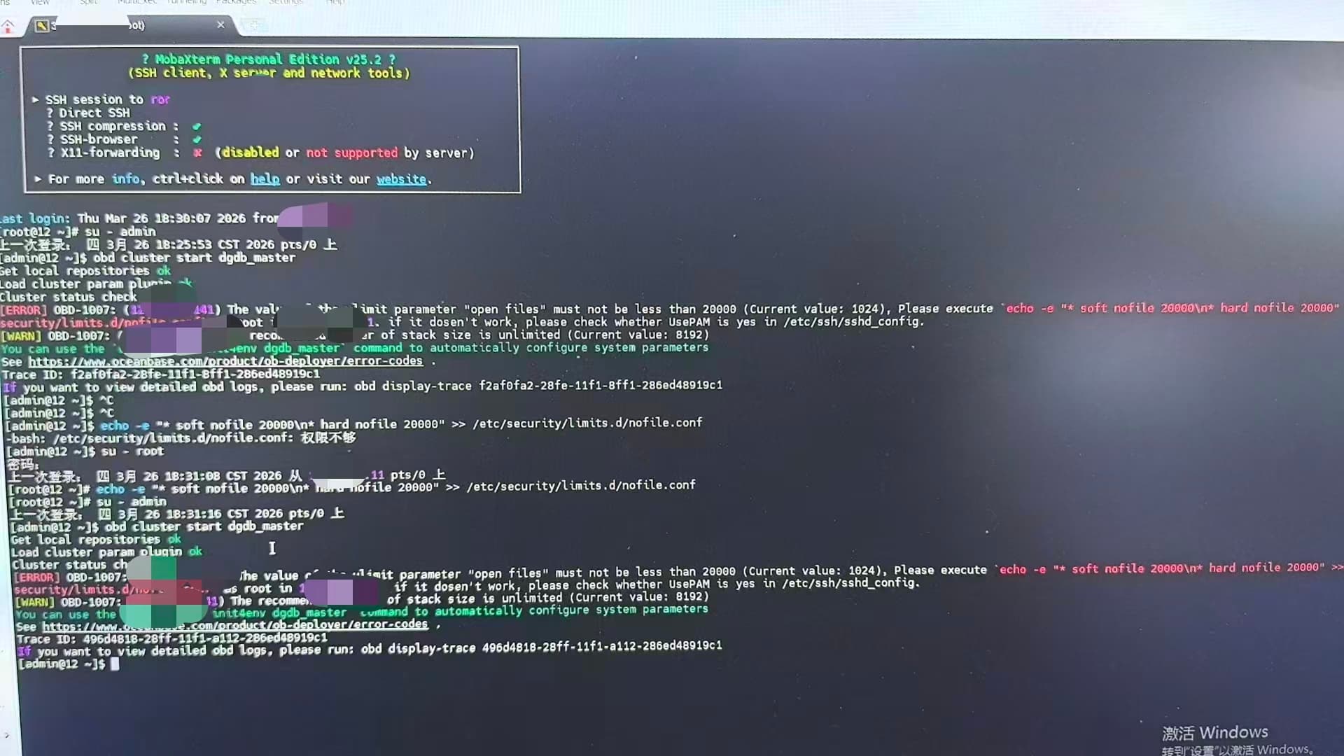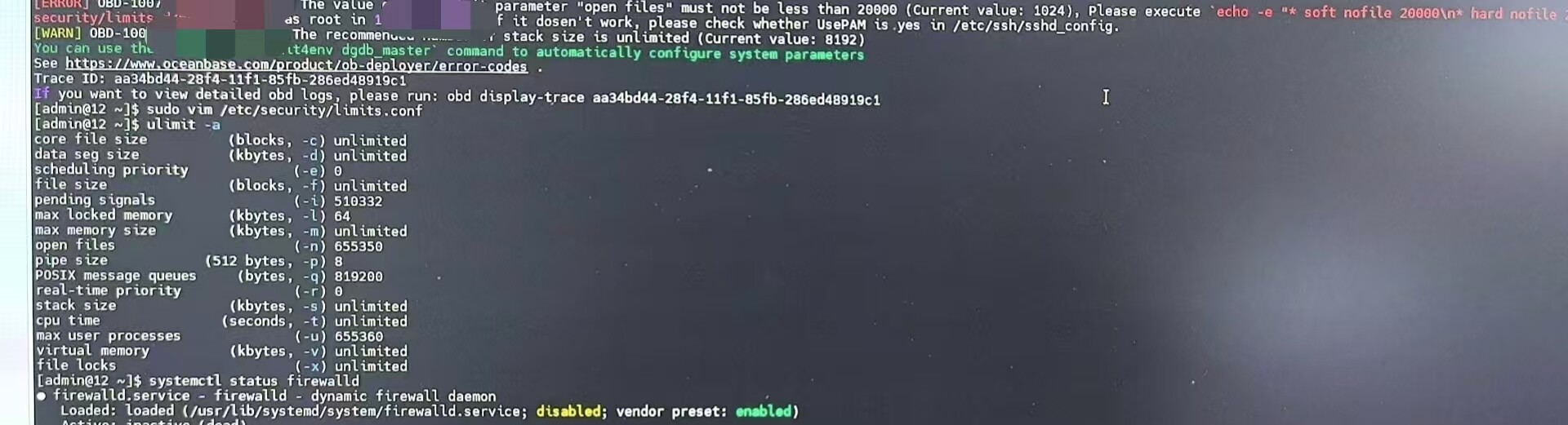 【问题描述】虚拟机服务器重启后集群停止了 obd重新拉起集群报错 limit参数不对