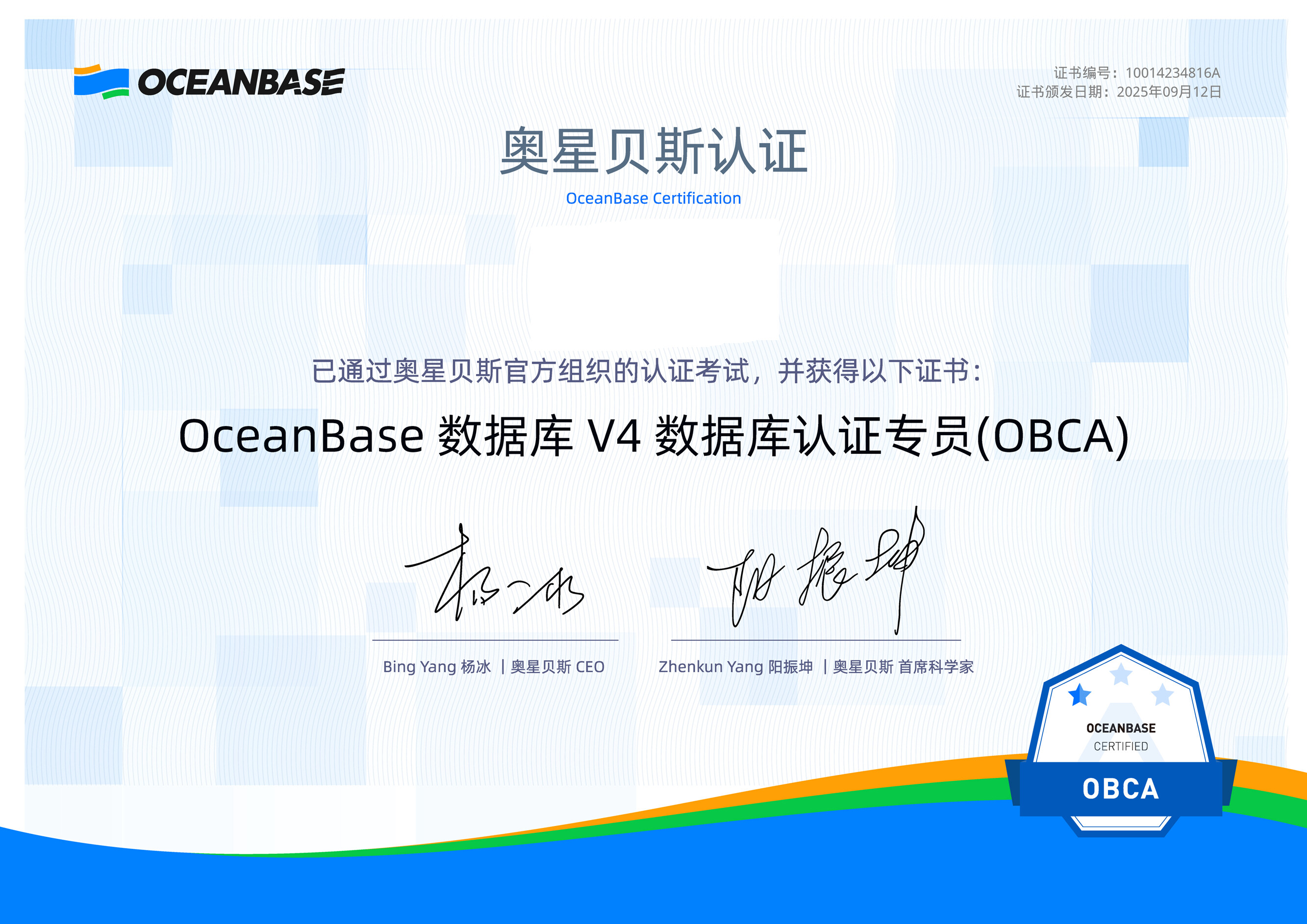 OceanBase的缩写,是蚂蚁集团完全自主研发的通用的 关系型分布式数据库