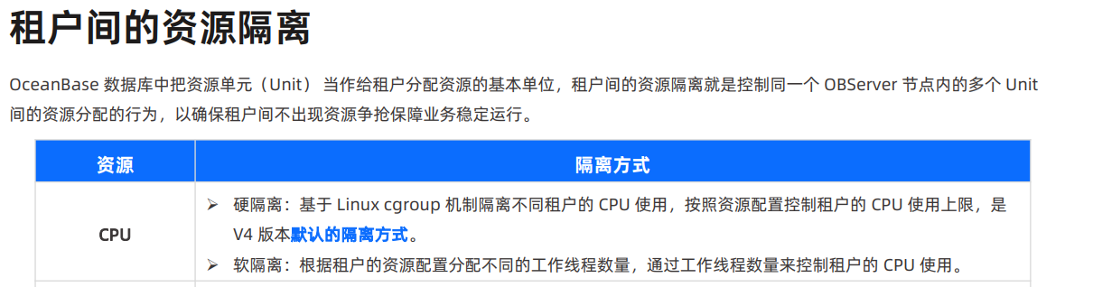 在 OceanBase V4 版本中,推荐使用基于 Linux cgroup 机制的“硬隔离”方式。