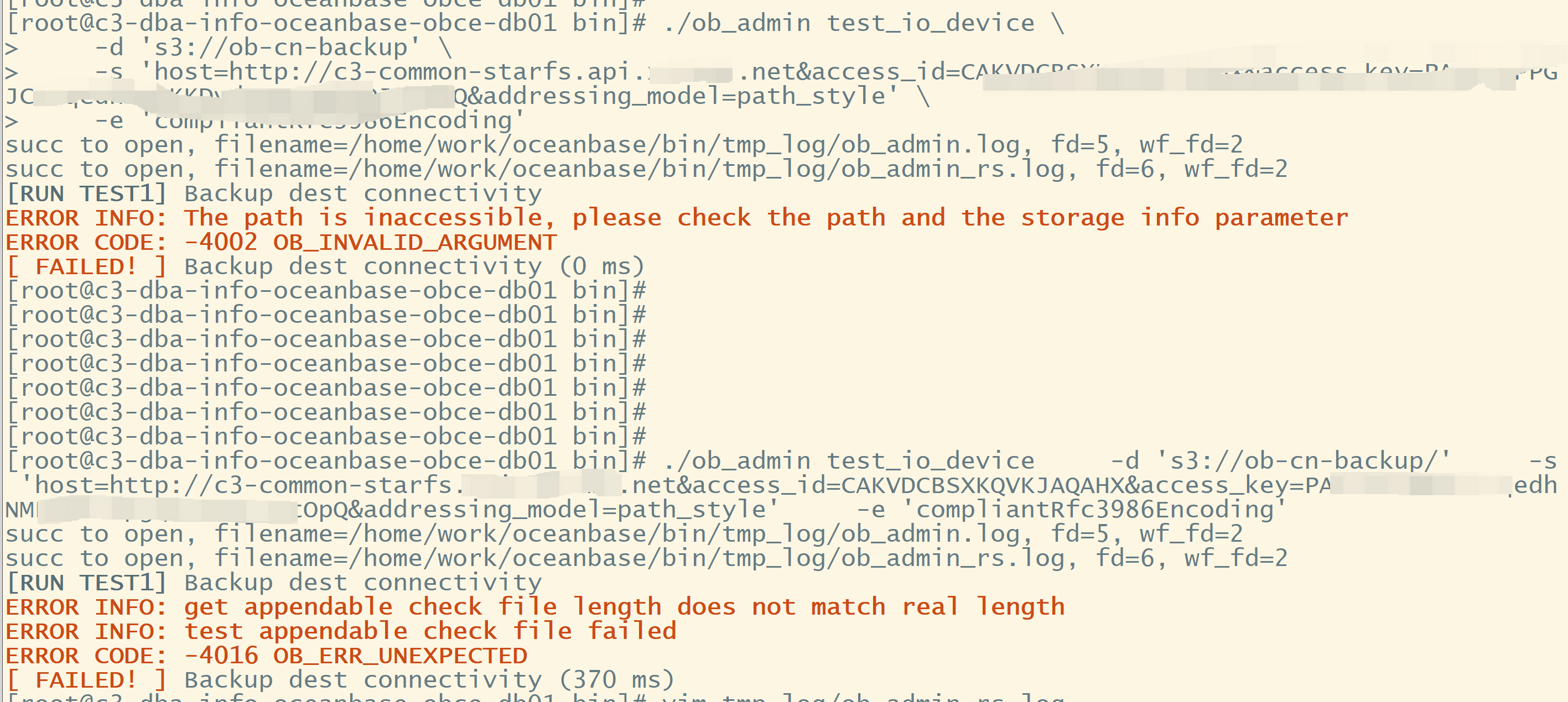 ERROR CODE: -4002 OB_INVALID_ARGUMENT