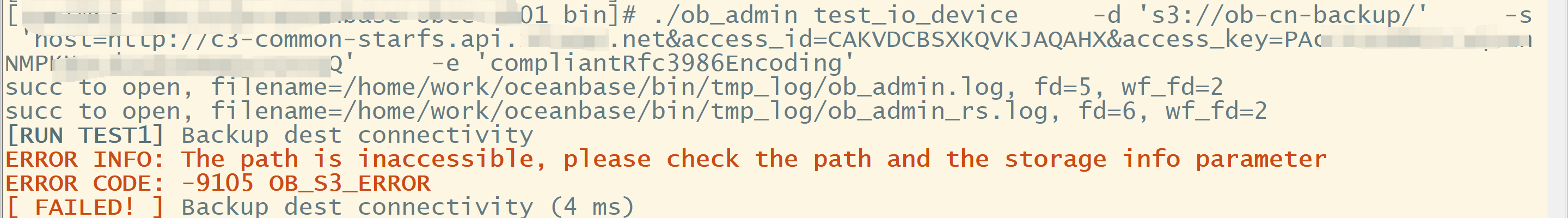 ERROR INFO: The path is inaccessible, please check the path and the storage info parameter