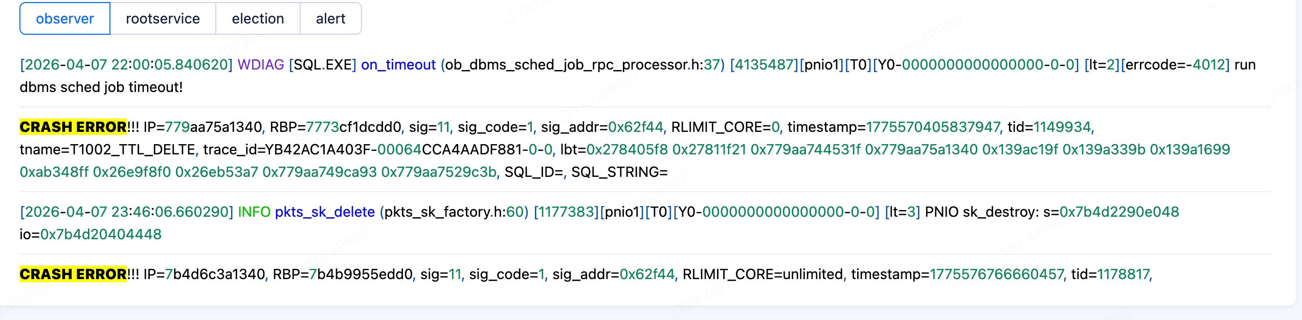 OceanBase 集群中遇到 observer 节点 crash。