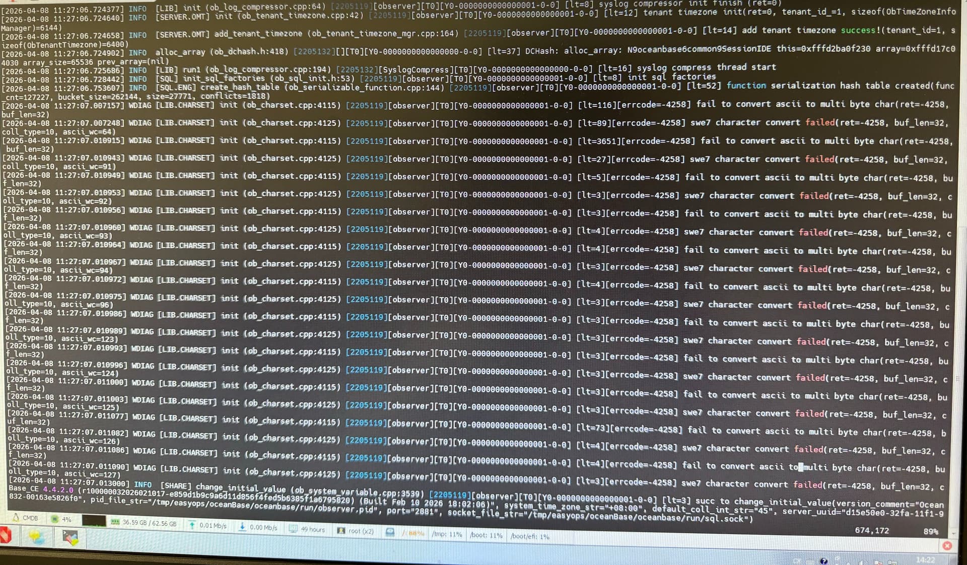 【 使用版本 】oceanbase-all-in-one-4.4.2_20260302.el7.aarch64