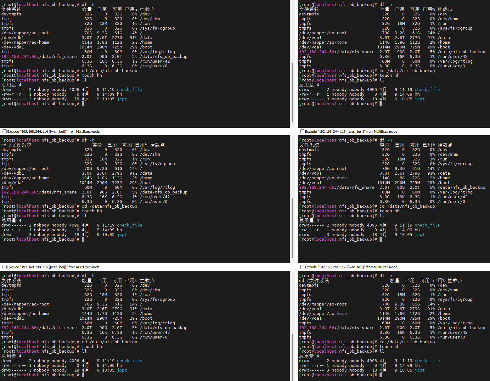ob集群是2+2+2架构,每台服务器挂载了/data/nfs_ob_backup的NFS目录