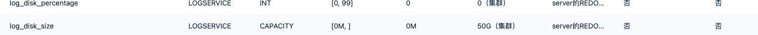 show parameters where name in (‘log_disk_size’,‘log_disk_percentage’);–这两个参数 你也查一下