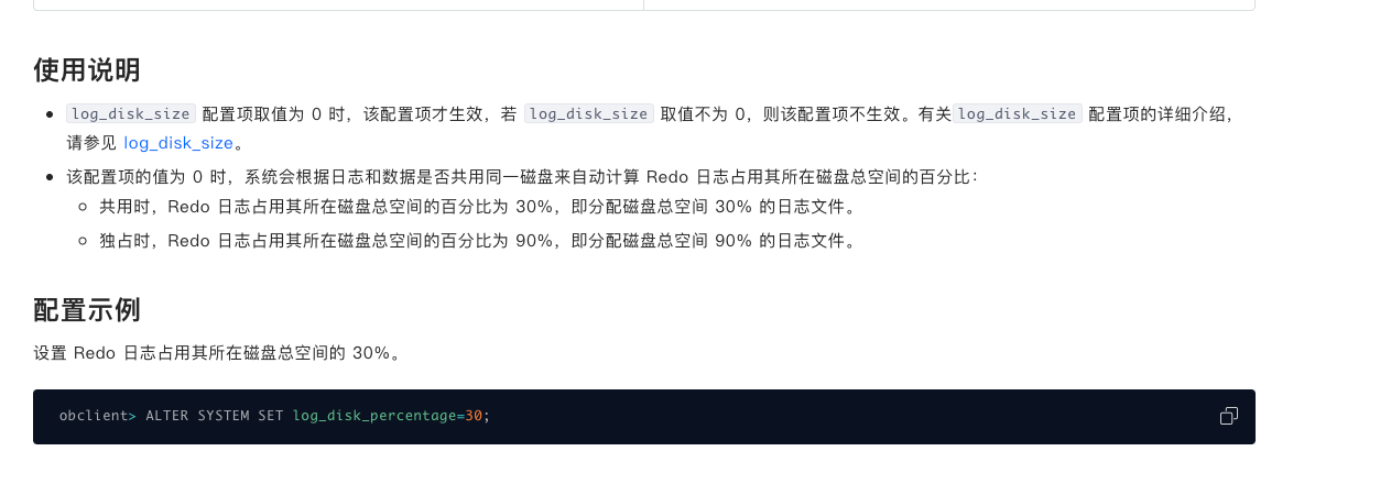 看你设置的log_disk_percentage=0和datafile_disk_percentage=0 你的日志盘和数据盘 应该是同一个盘吧 应该是公用占用了 数据盘占用了60% 日志盘占用30%