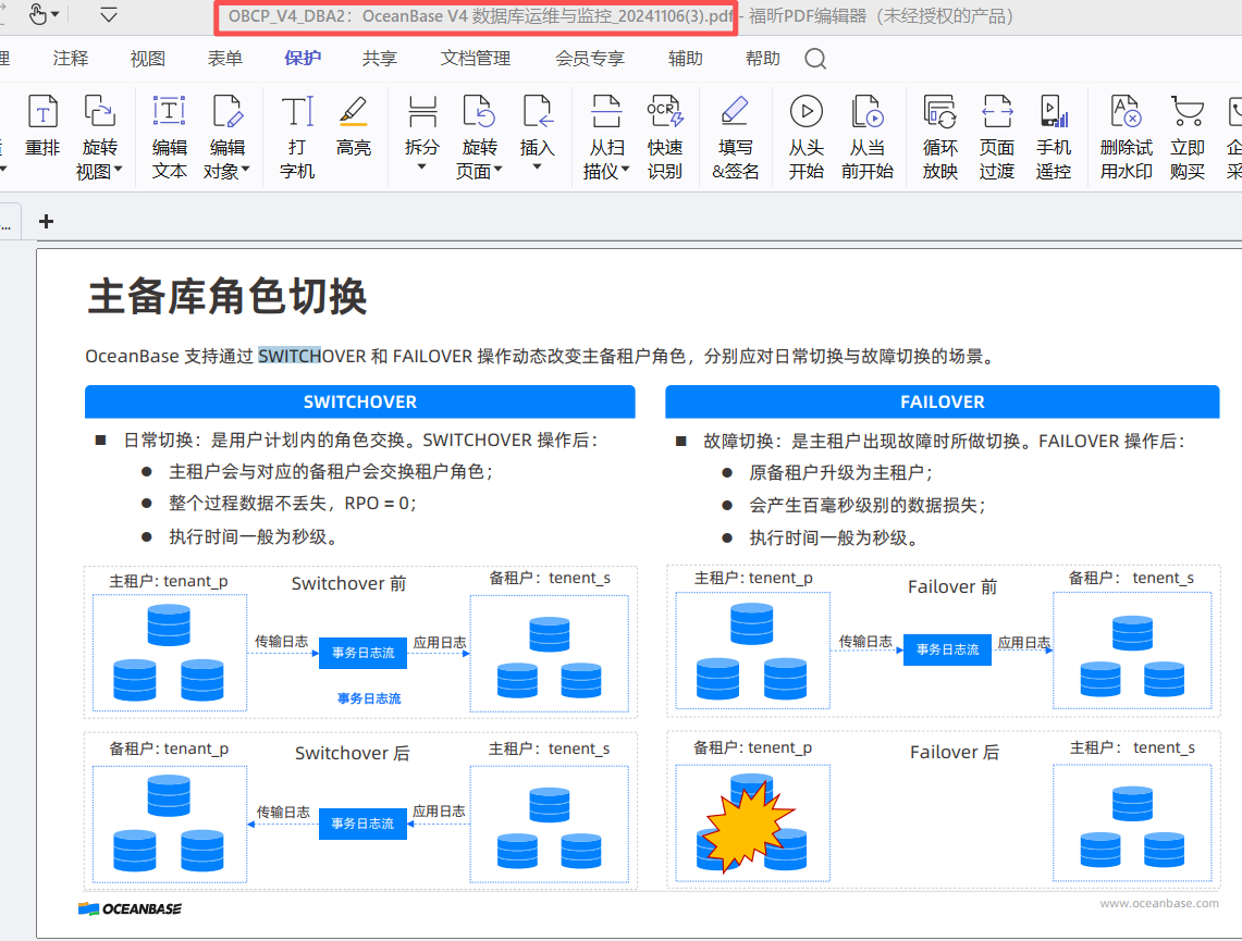 switchover是正常切吧,failover是一个故障吧