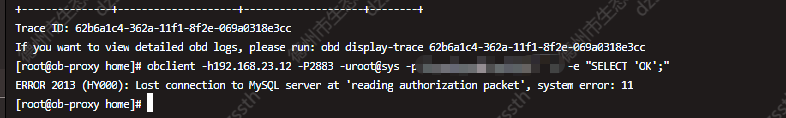 【问题描述】集群状态正常,无法通过obproxy链接登录