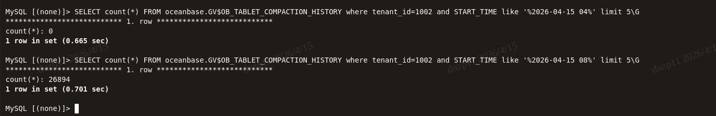 SELECT * FROM __all_virtual_compaction_diagnose_info