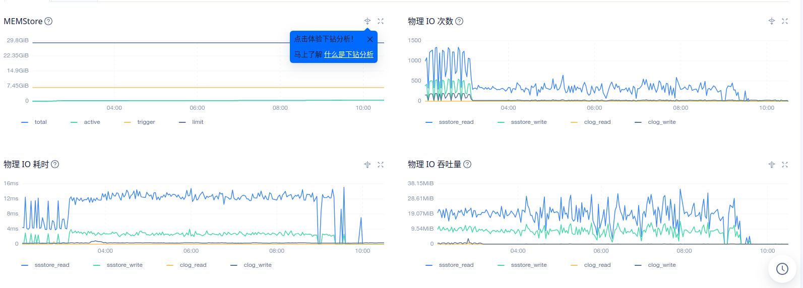 1、在ocp 租户–> 性能监控–>存储与缓存 物理 IO 次数,物理IO吞吐量,物理IO耗时