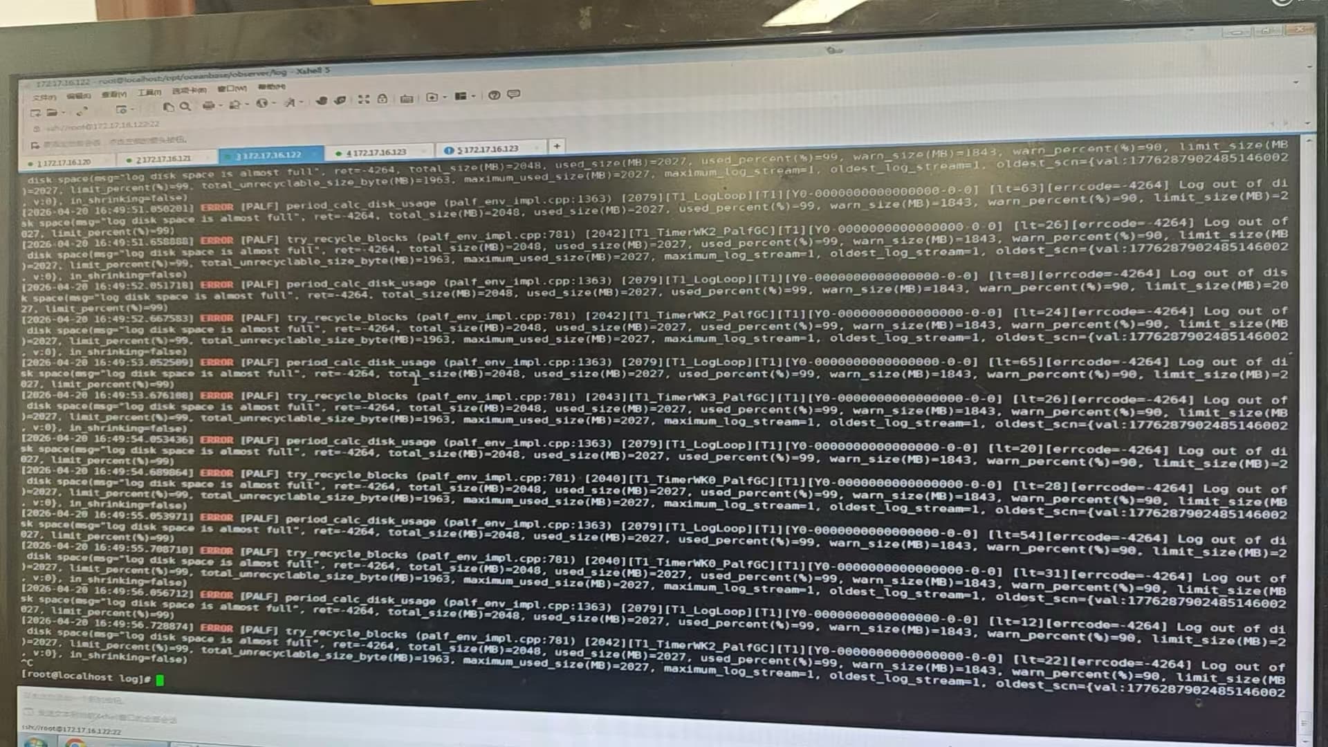 日志采集命令: obdiag gather scene run --scene=observer.clog_disk_full