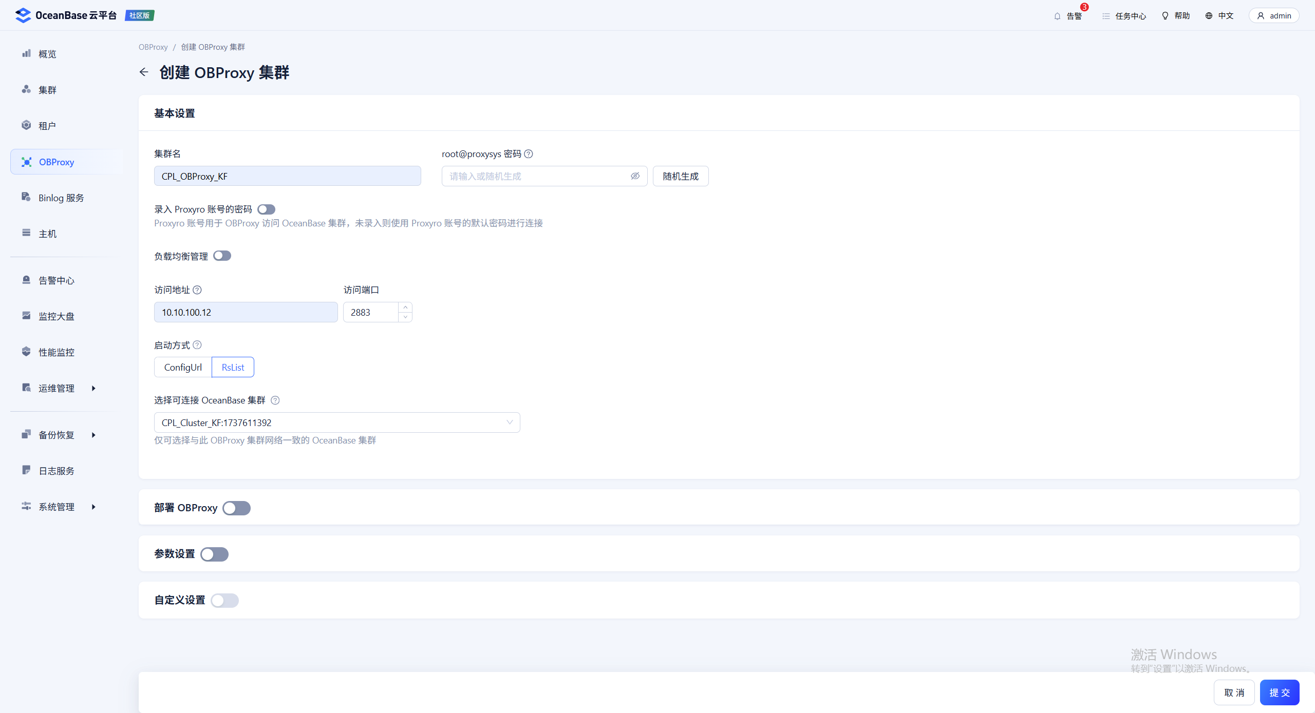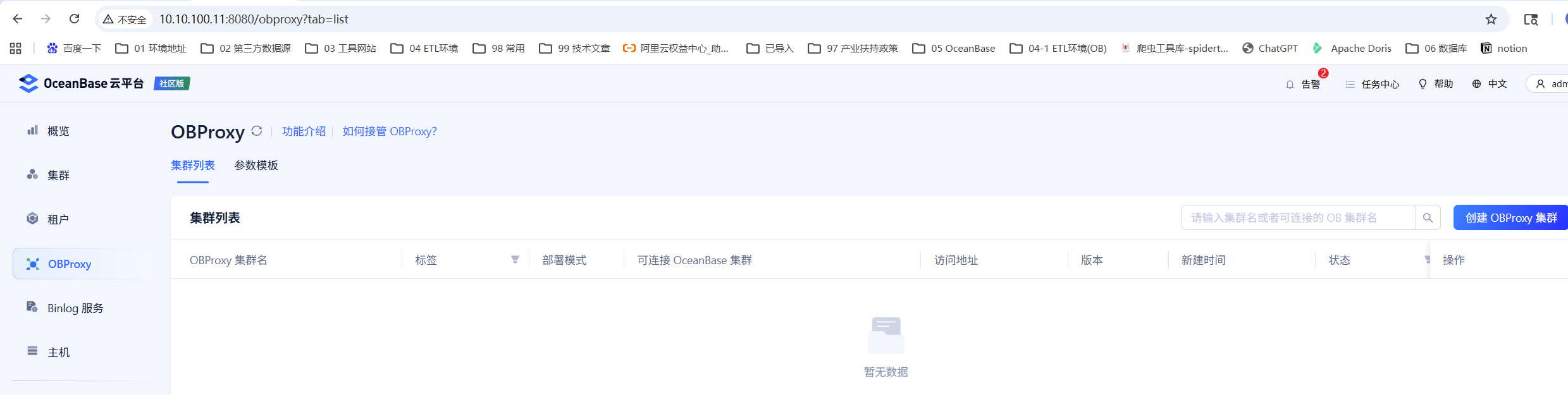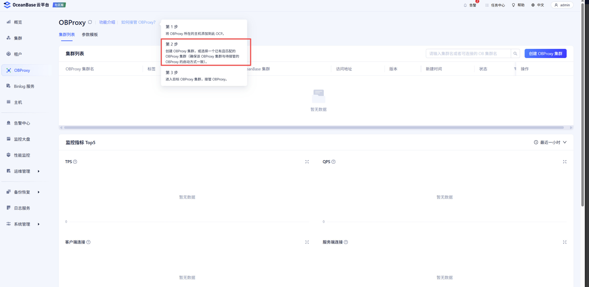 如果是新OCP接管是建个空的OBProxy集群,这里不需要部署。